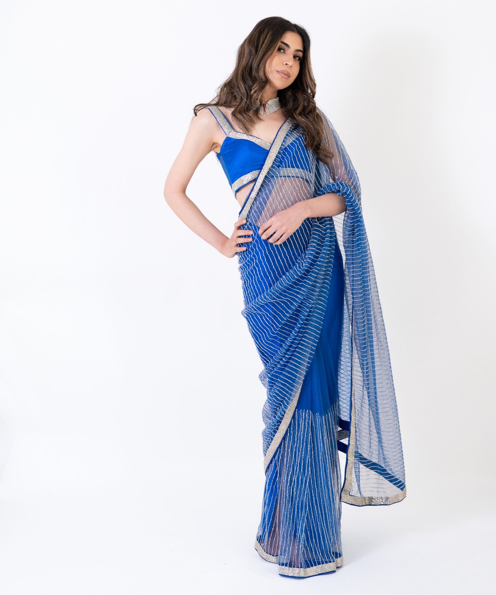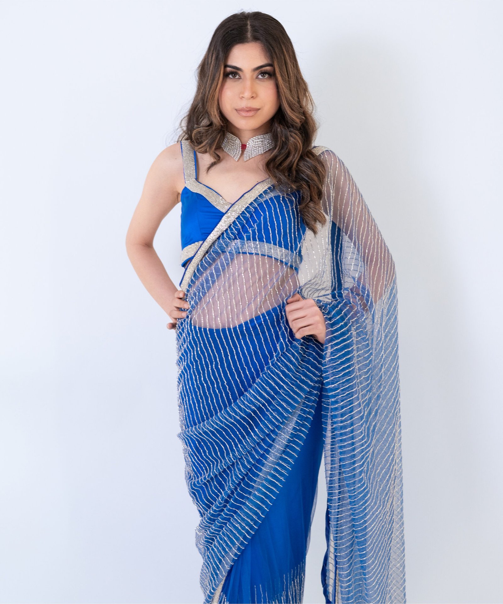 Electric Blue Pre-Draped SareeElectric Blue Pre-Draped Saree