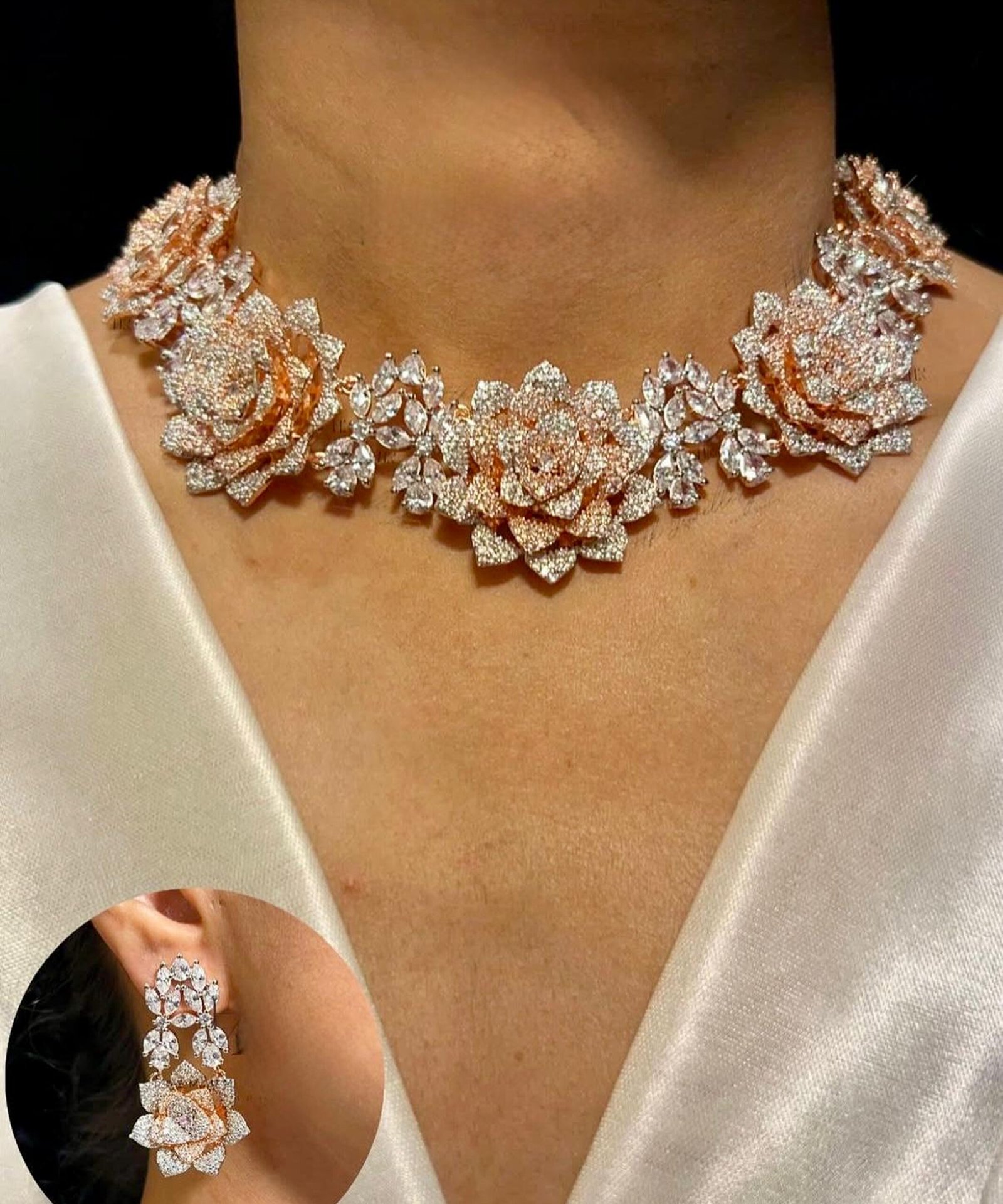 The Floret Choker Set exudes elegance. The Crystals and Pearl Drops are handcrafted to impart ultimate grace only to make heads tum every time you walk by. The Swarovski elements are carefully selected for their exceptional shapes and brilliance, exuding a sense of luxury and sophistication.